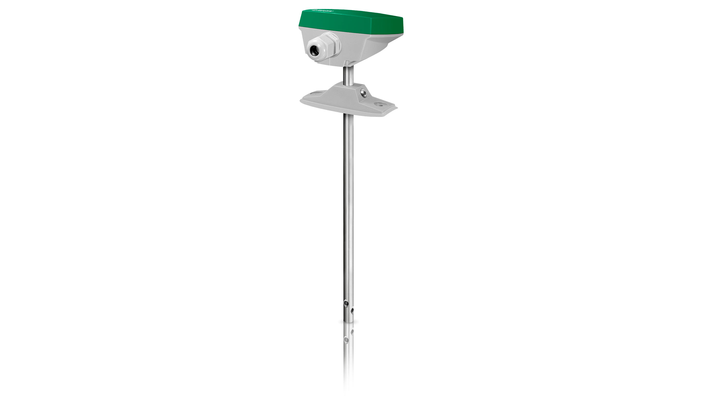 The duct sensor is very easy to mount and it has an adjustable insertion length. The terminal block for connecting the analog input to a controller is located under the cover. The cover is easily removed from the base with a twist. The sensor is designed so that the seal remains in the cover at all times and the cable gland is replaceable.