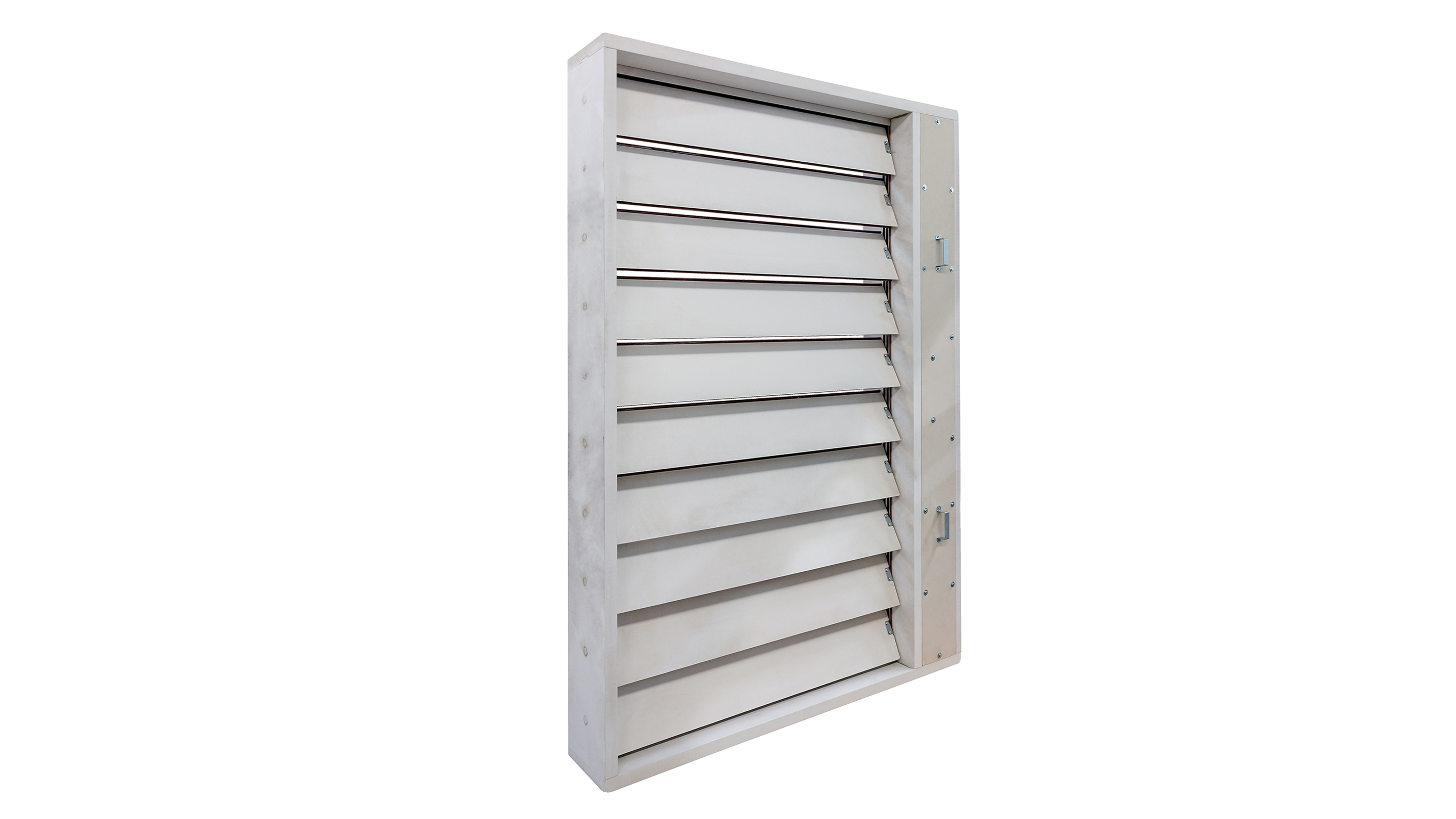 Rectangular smoke control damper for smoke and heat evacuation systems for multi compartment. The slat and the body are made of calcium silicate board and the chemical design is class 4.