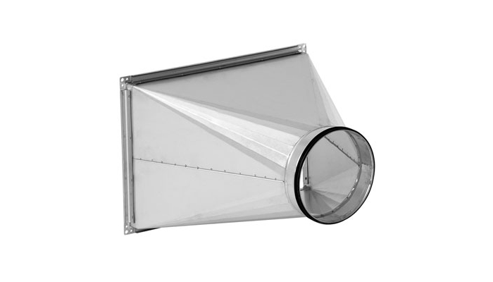 Rect-to-round transition are used between rectangular and circular ducts. The rectangular connection has joining profiles type RJFP and the circular connection has Safe seal.