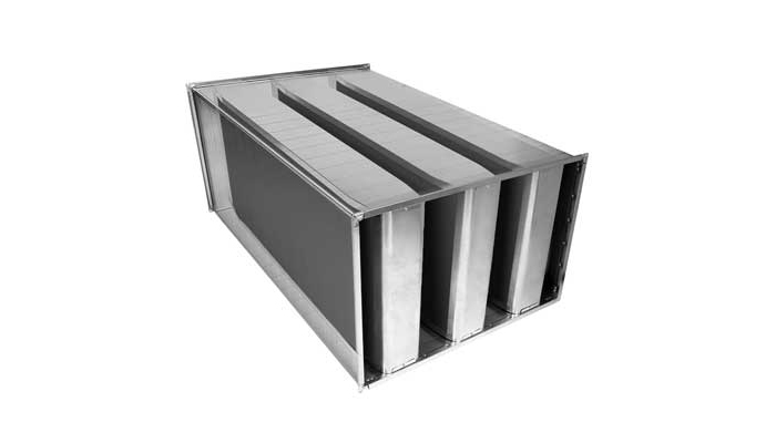 Rectangular straight attenuator from the Aerodim™ series. SLRSS2 is built with the Aerodim™ attenuator splitter SLRA.