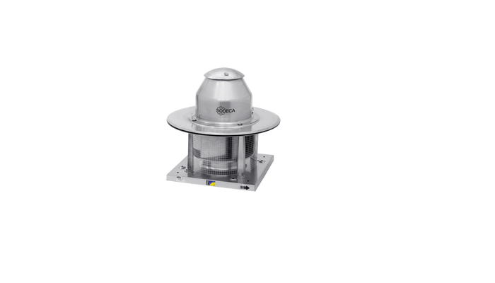 400 ºC/2h centrifugal roof fans with horitzontal air outlet, aluminum hood