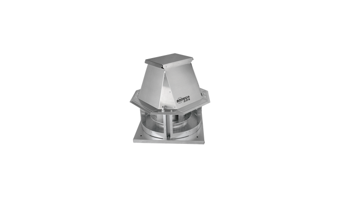 400 ºC/2h centrifugal roof fans with horitzontal air outlet, aluminum hood