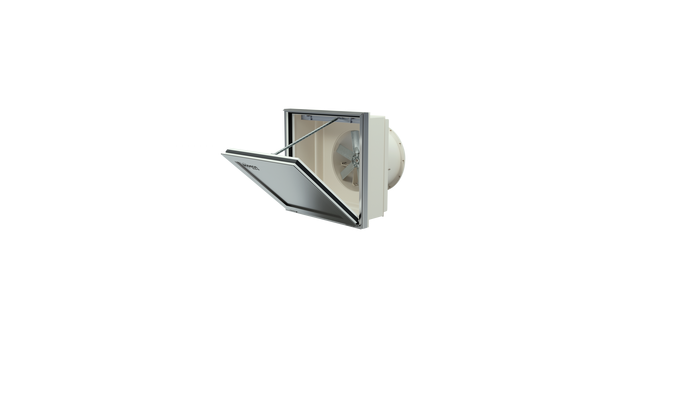 Dynamic wall-mount extractor fans with motorised opening system for connection to extract duct. Specially designed for the fast, effective exhaust of harmful smoke and gases in the event of fire. Suitable for installation in industrial buildings, stores or in any other type of building. Approved as a whole in accordance with standard EN 12101-3, with F400 and F300 certificate. Can be used for ambient ventilation.