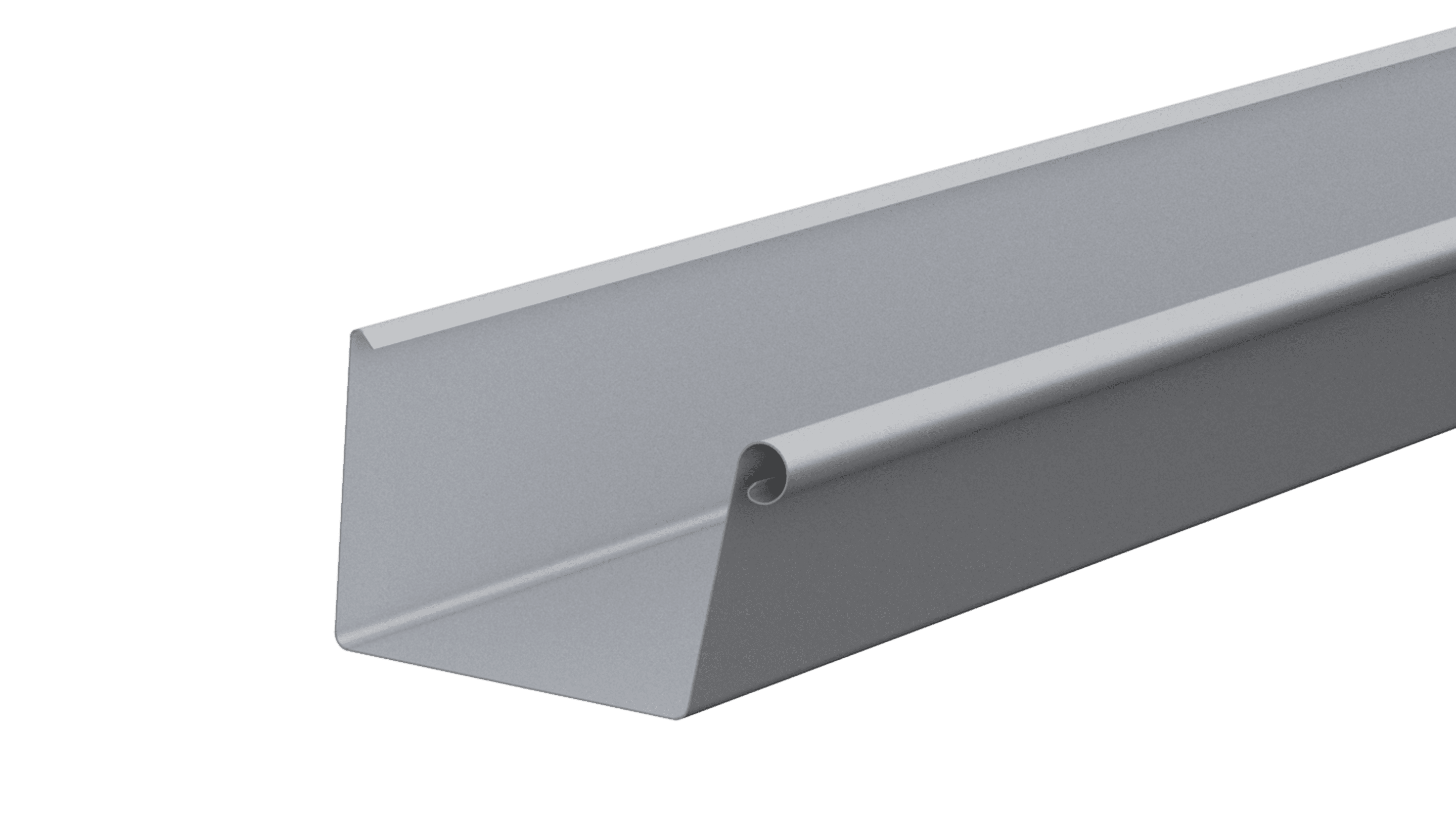Rectangular gutter available in several different lengths and materials. This product is made of pre-coated galvanized steel in 0,6mm thickness. Because of the high quality steel it will age in the same way as all the other products in the system and no difference in design will occur.
