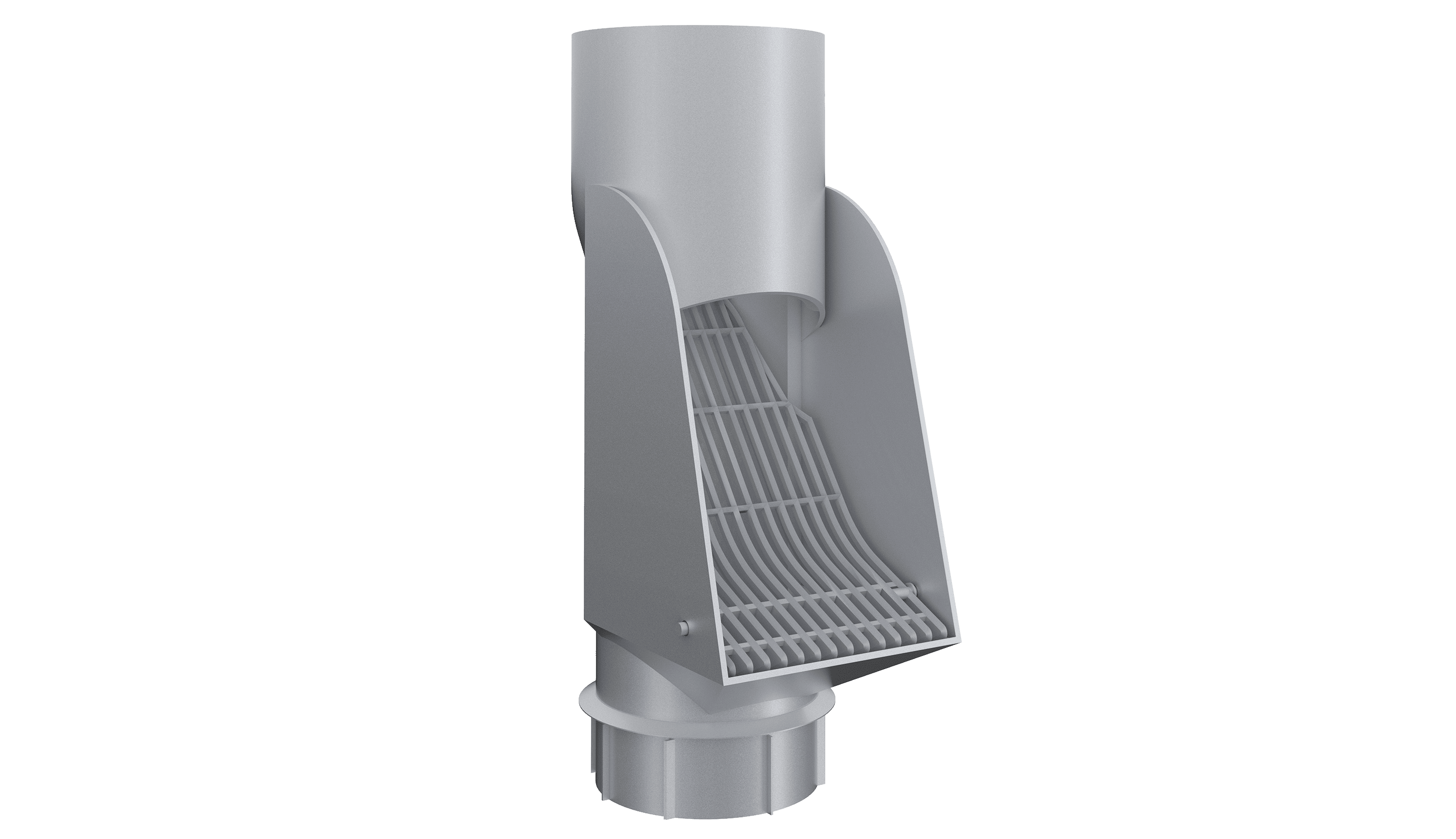 Self-cleaning leaf trap in HD polyethylene plastic. The lower section fits standard ground downpipes (110 mm).