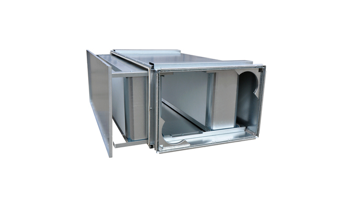 DACKA-A is an openable duct attenuator in galvanized steel* with splitters filled with Acutec® attenuation material. Splitters are removable for cleaning or replacement.