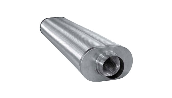 Silencers are made from 2-layer, flexible aluminium tubes of type SRF. The inner tube is micro-perforated and between the inner and outer tubes is an attenuation material layer of glass wool. The attenuation material reduces the noise passing through the silencer.