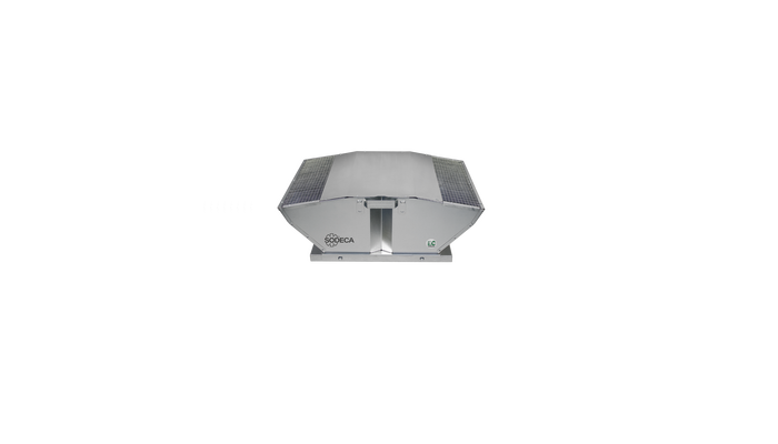 Roof-mounted centrifugal extractor fans with low noise level and external rotor motor. fitted with a EC Technology motor and a built-in speed regulating power meter.