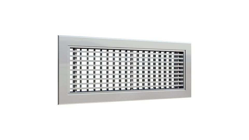 AL21CN-M is a rectangular aluminium grille with fixed horizontal 15° bars and additional vertical directional bars for regulation of distribution pattern.