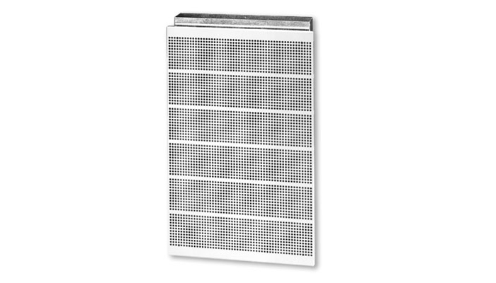Comdif CVA is a rectangular perforated displacement diffuser for installation in walls or similar structures. CVA has a rectangular connection. Behind the perforated front plate, CVA is equipped with individually adjustable nozzles, making it possible to alter the geometry of the near zone. The diffuser can be turned and has a rectangular duct connection, so the diffuser can be connected at the top or bottom. A wall duct with circular connection is supplied as an accessory. The diffuser is suitable for the supply of large volumes of moderately cooled air.