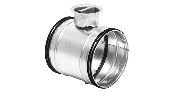 Has a turning circular blade with an EPDM-rubber seal which tightens against the inside of the damper when closed. The blade can be adjusted in a 0–90° angle.