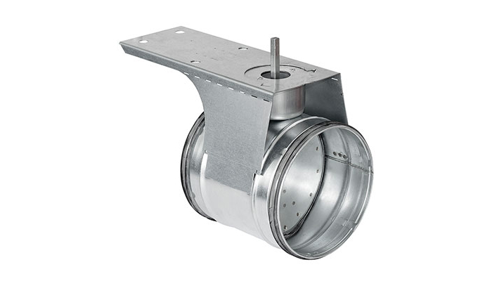 Ø 80–630 consists of a DTU damper with a KOMHY combined motor shelf added. The damper has no knob, and has a longer spindle to avoid the need for extension spindle VREDF. The damper is designed to have a motor added on site.