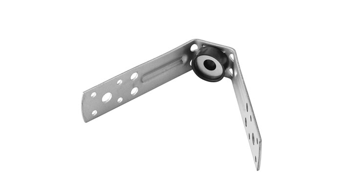 Suspension bracket designed to suspend ductwork with threaded rods of maximum 8 mm. Allows fixing against trapeze type ceilings. Supplied with a moulded elastomeric element which prevents the transmission of vibrations. For best vibration isolation, load should not exceed 40 Kg. Material: 25 x 2.5 mm. Surface finish: Electro zinc plated.