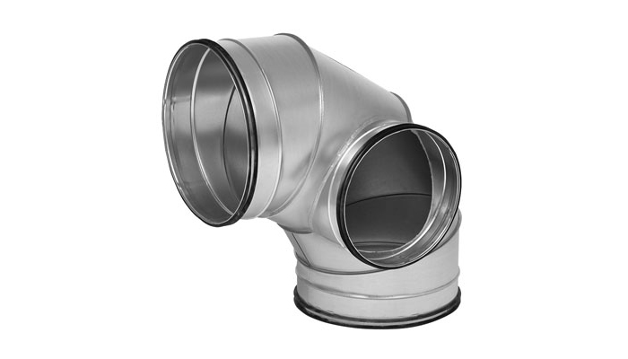 Segmented and lockseamed bend with separate branch for cleaning. The stud is fitted with a Safe take-off and fits an inspection cap. The design gives a lower pressure drop than the equivalent design using a T-piece. The stud can also be used as the connection for an SR duct.