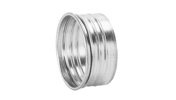 After the duct has been shortened/fitted, add sealant etc between the swaged seams on the slide-on stub, after which the slide-on stub is inserted into the duct. The two swaged seams guide and retain the slide-on stub.