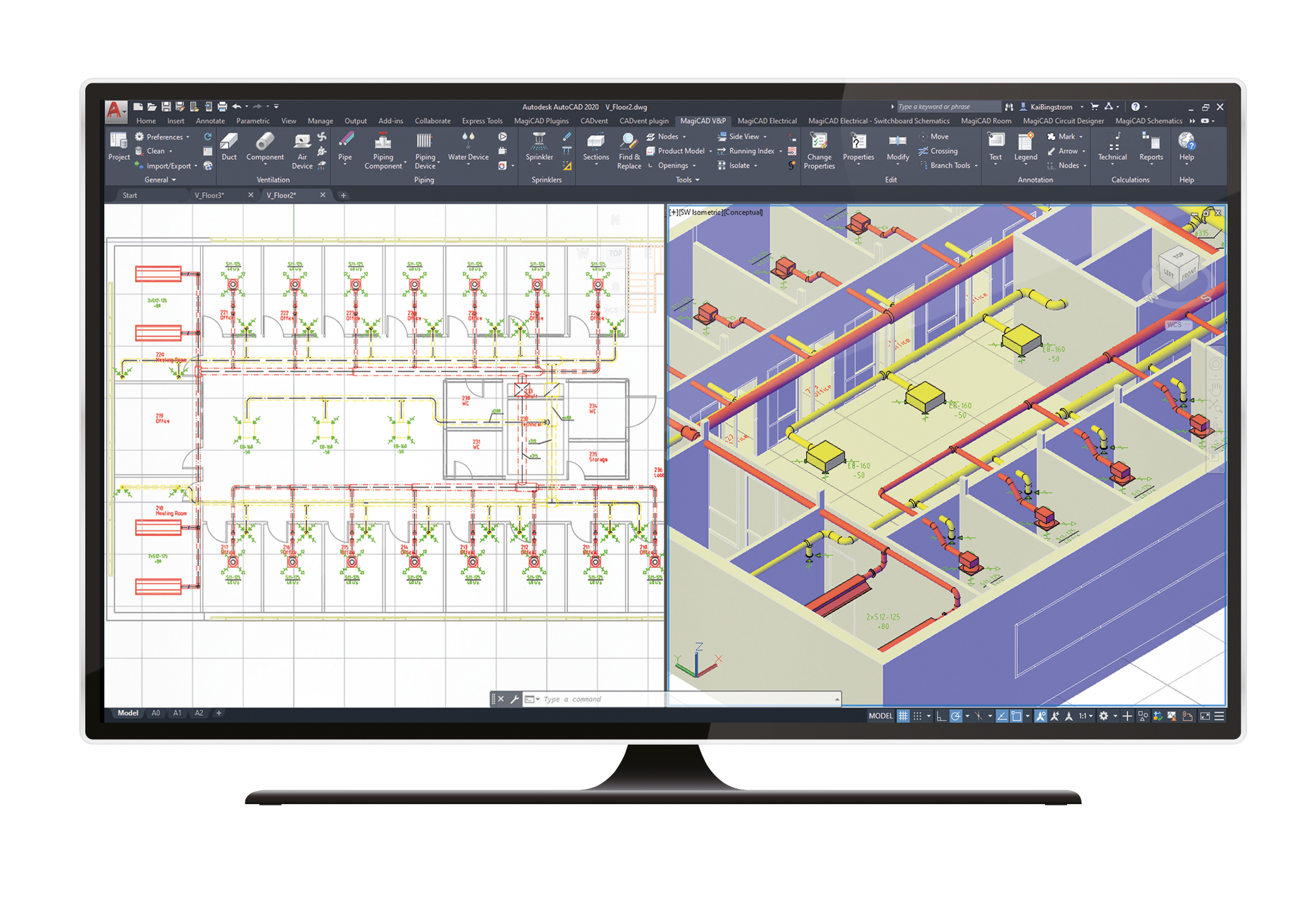 CADvent plugin for AutoCAD is a toolbox with several very helpful features for ventilation designers and contractors. Users can create rooms with property requirements and upload these to LindQST. Moreover for those who also have MagiCAD installed there is a wider choice of functions available.