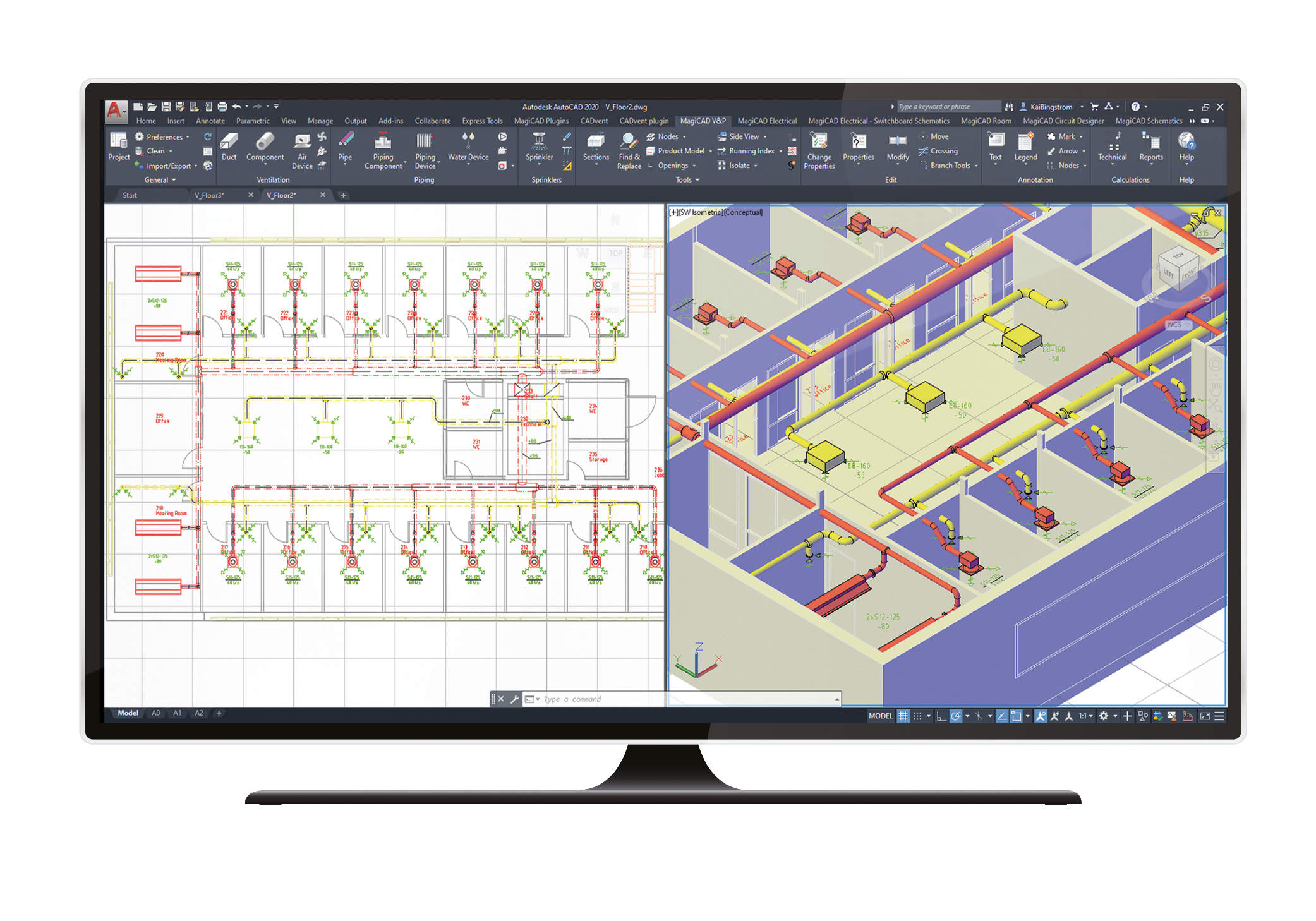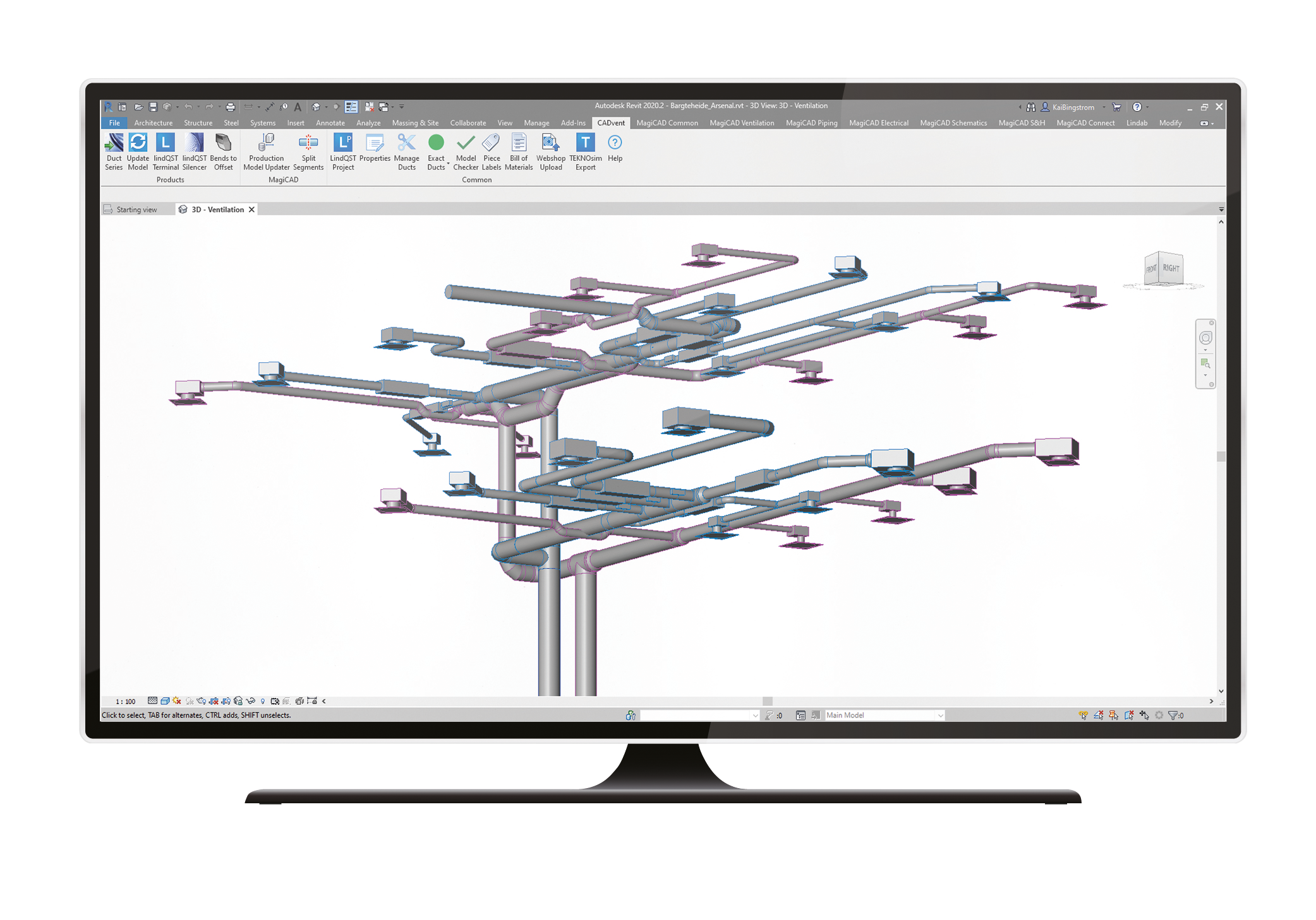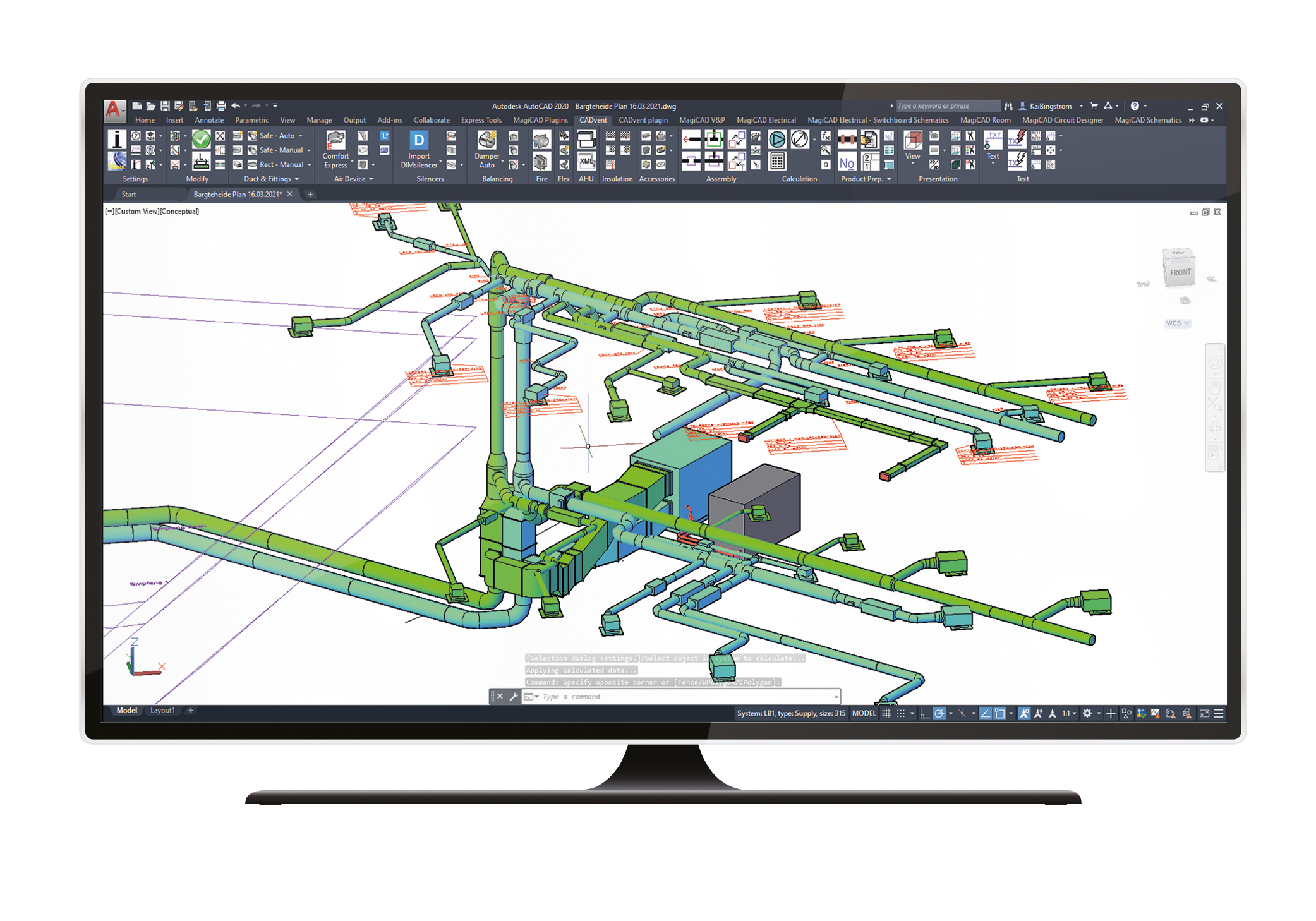 CADvent plugin for AutoCAD is a toolbox with several very helpful features for ventilation designers and contractors. Users can create rooms with property requirements and upload these to LindQST. Moreover for those who also have MagiCAD installed there is a wider choice of functions available.