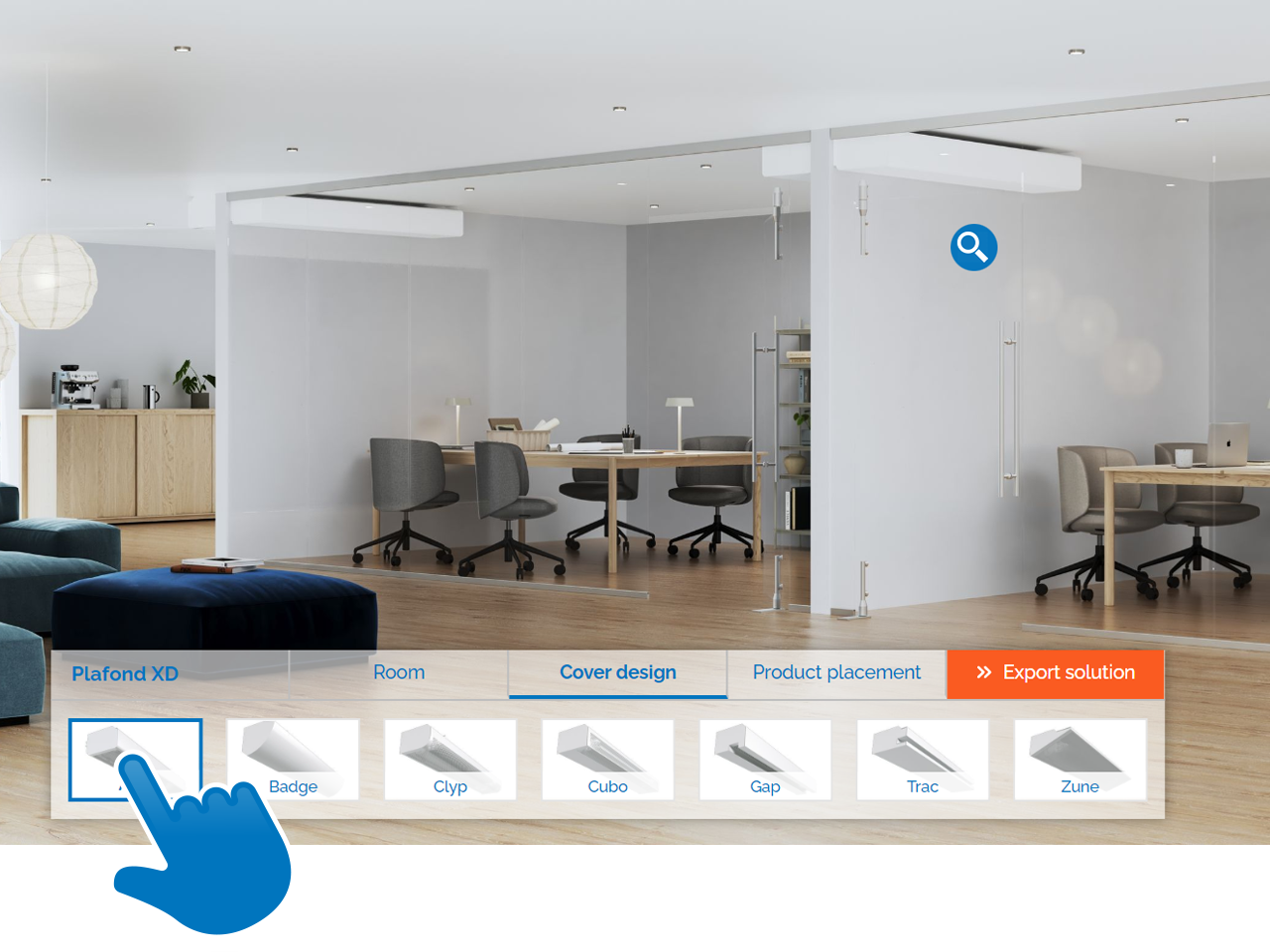 With so many options to choose from in terms of where the Plafond XD can be placed and how the seven unique design covers can be fitted into various rooms with different interior design styles, there is simply no better way to present the Plafond XD covers than with an interactive display. With this tool we aim to inspire and set new standards for ventilation as part of the interior. Remember to export your solution when you have found what satisfies your needs and feel free to reach out for more information and calculations.